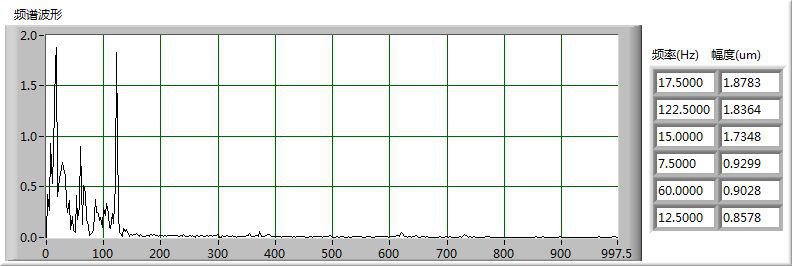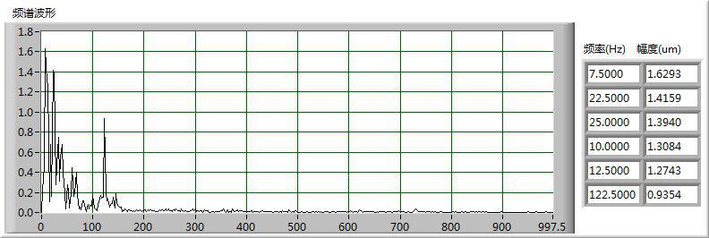 e、根據位移頻譜顯示,峰峰值較小,運行正常