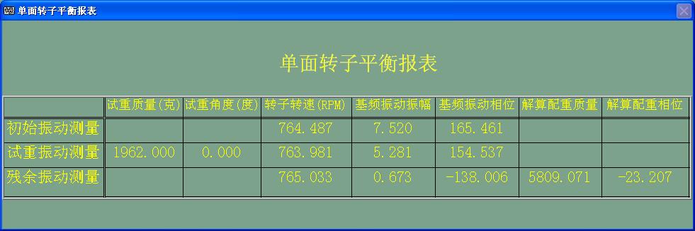 轉(zhuǎn)子動(dòng)平衡報(bào)表如下: