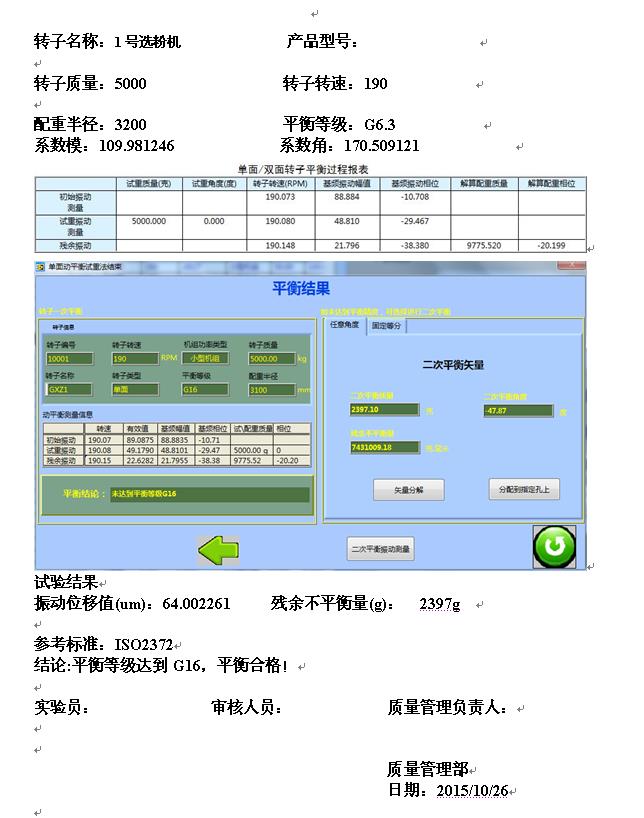 如圖:下圖是做完動平衡后的轉子報告。