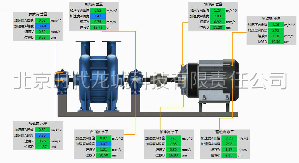 根據(jù)旋轉(zhuǎn)機(jī)械振動(dòng)診斷國(guó)際標(biāo)準(zhǔn)ISO-10816振動(dòng)烈度小于2.8mm/s 位移小于28μm振動(dòng)均在良好限值以下,故此泵整機(jī)狀態(tài)良好。